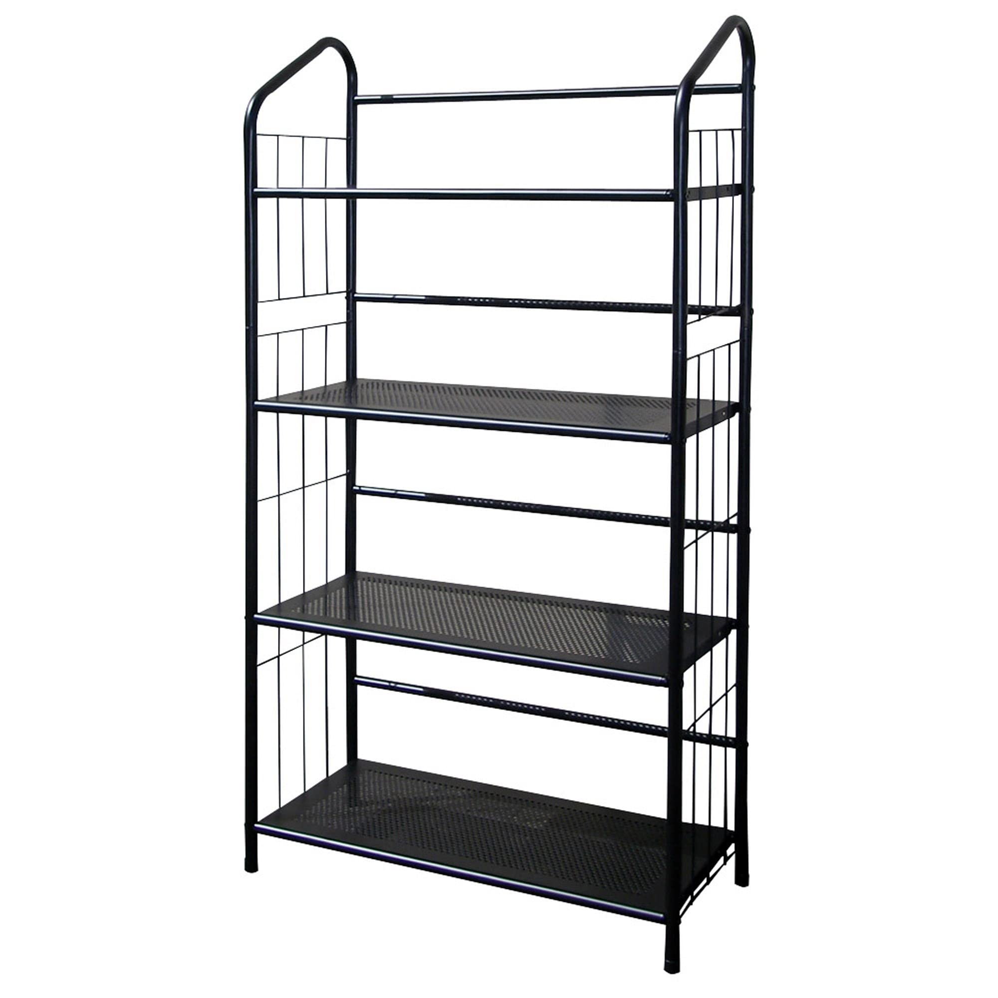 must-have for every home, the 4-tier black metal shelf is an incredibly versatile transitional piece that can take on many roles. It can be a modern shelving unit for your living room, a handy organizing shelf in your laundry room or garage, a handy bathroom shelf for towels and supplies, and even a stylish coffee station and microwave for your kitchen. This large shelving unit is made entirely of steel tubes and steel levels, masterfully powder coated in a sleek black finish and is extremely wear-resistant, corrosion-resistant and durable enough to support appliances and other heavy items. Give your home that much-needed storage space without losing style points. 49"H x 11"W x 26"D