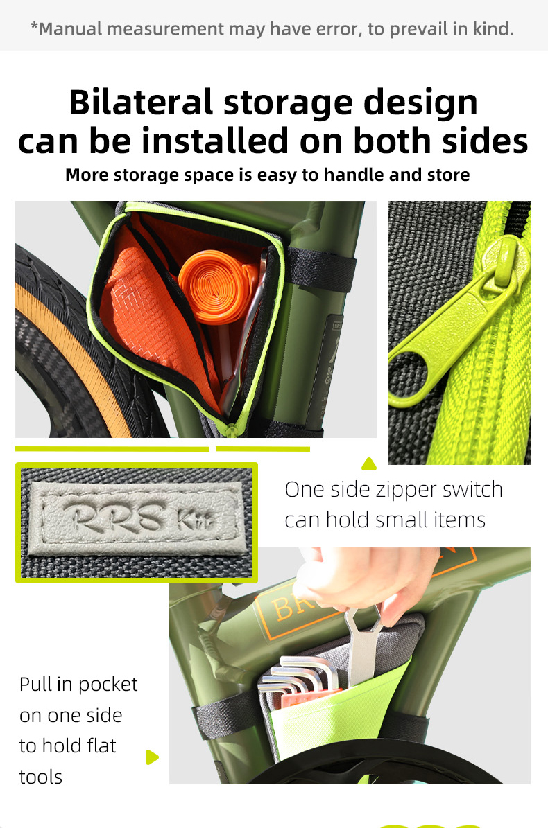 Features: The double-sided storage design can accommodate both sides, considering multi-directional tool storage space, making it easy to handle and store. One side of the zipper switch can hold three-dimensional small items, and the other side of the pull-out pocket can hold flat tools.