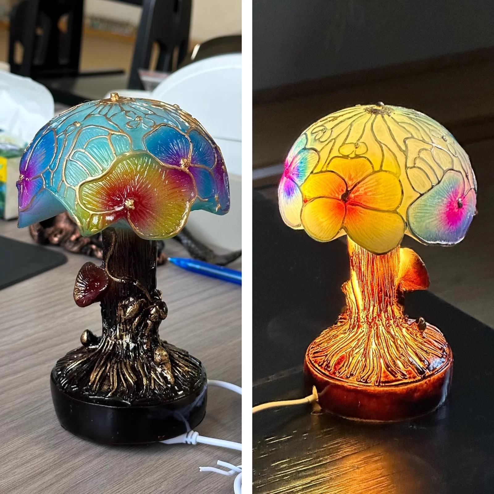 Stained Glass Resin Plant Series Table Lamp Bohe Mushroom Night Lights Decor