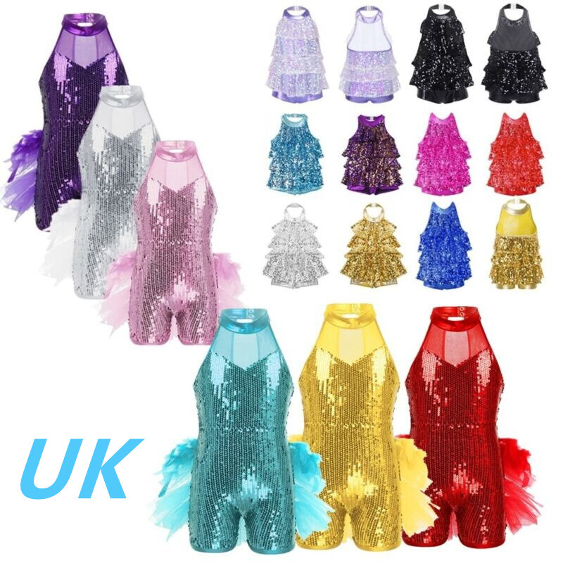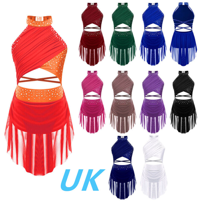 UK Girls Gymnastics Leotard Camisole Ballet Dance Dress Kids Bodysuits Costume