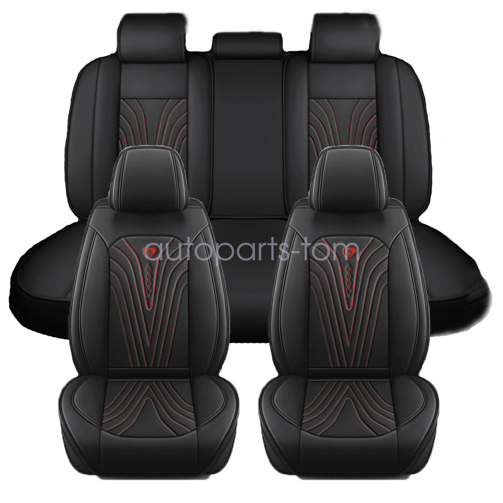 Car 2/5 Seat Covers PU Leather Car Seat Cover Front & Rear For 2009-2023 Ford F150 2017-2023 F250 F350 F450 Black
