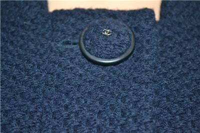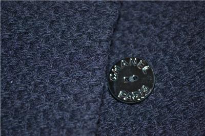 - Closure: Hidden Button Front w/ Oversize "Chanel Paris" Buttons Inside - Large front fabric covered button