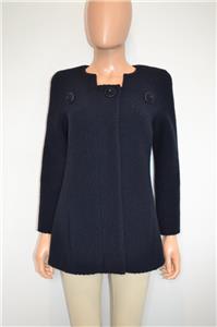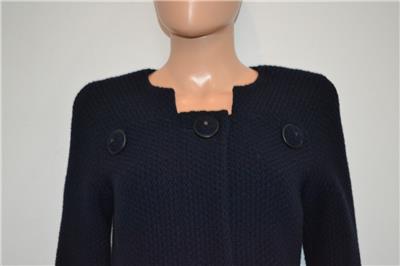 - Three Horizontal Placed Oversize Navy Blue Woven "CC" Button Front Detail