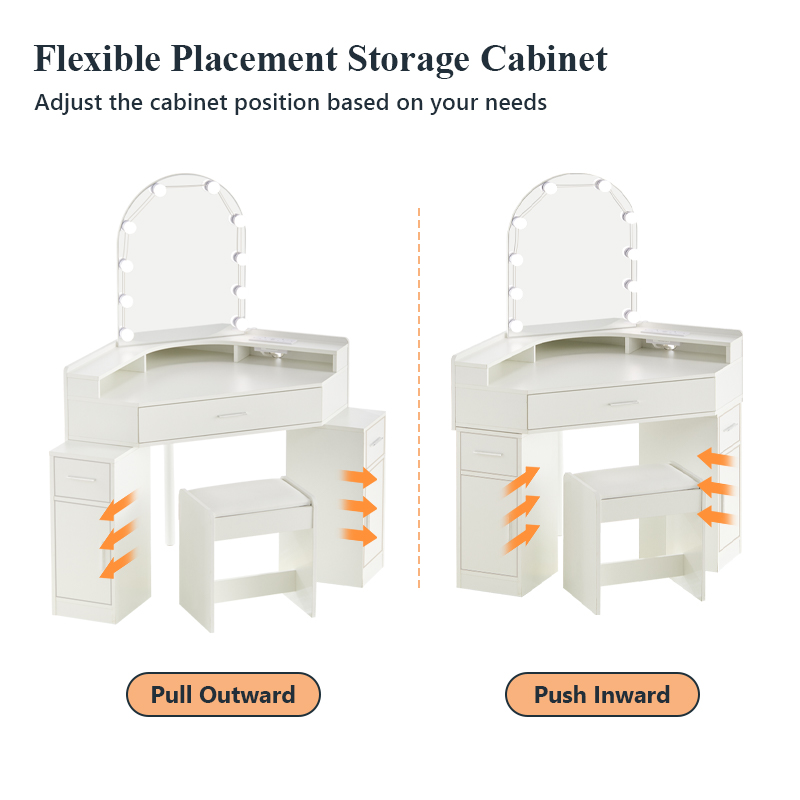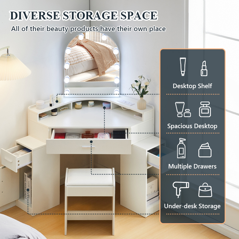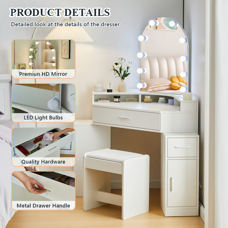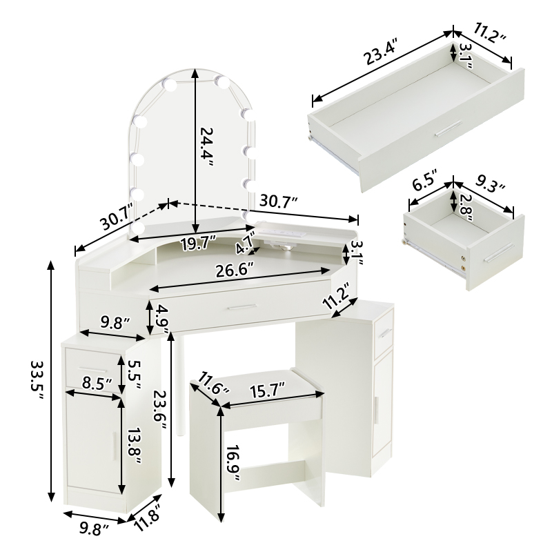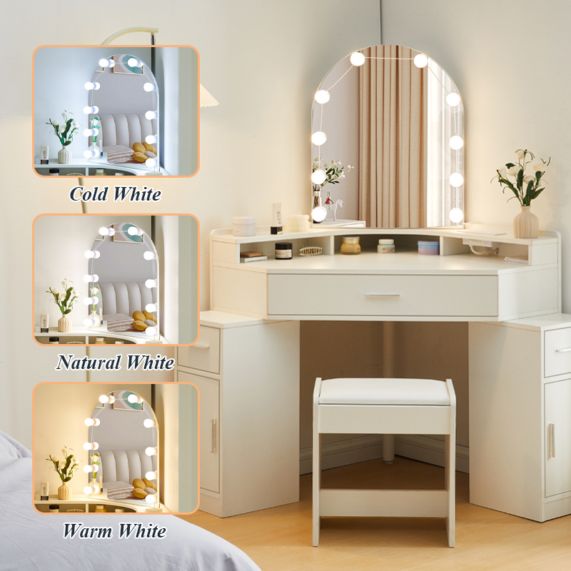 Package list1: 1 dressing table, 1 stool, parts,10 bulbs instruction(