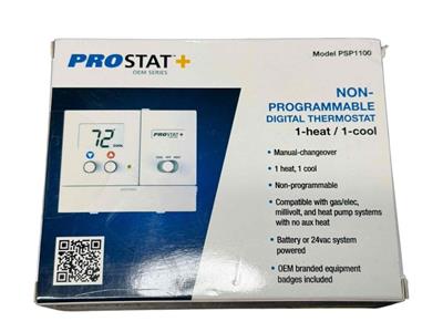 NEW PROSTAT+ OEM SERIES NON-PROGRAMMABLE DIGITAL THERMOSTAT 1-HEAT / 1-COOL. PSP1100.