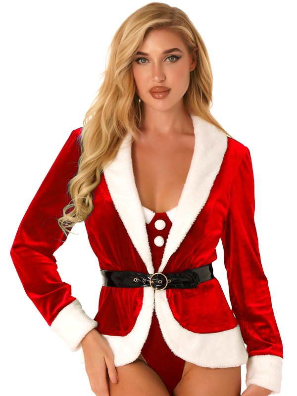 Set Include: 1Pcs Women Santa Coat, 1Pc Belt