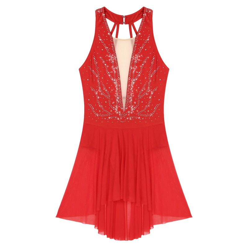 Sleeveless dance dress for women, embellished with rhinestone, sparkle under the light to brighten up any performance.