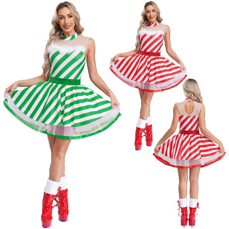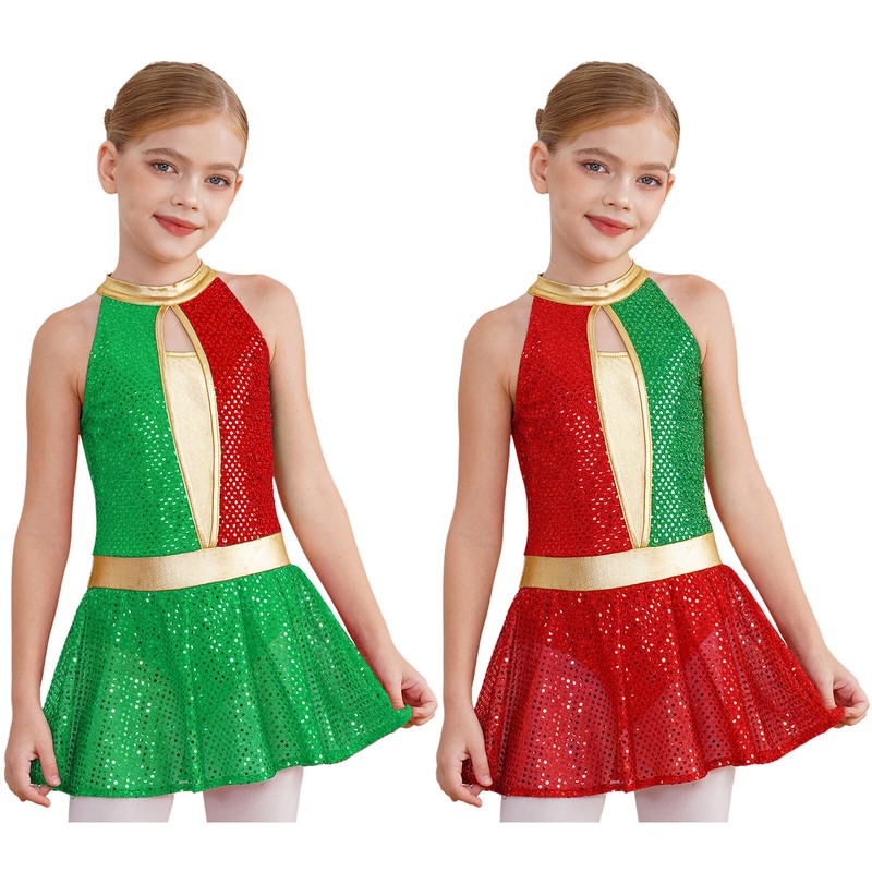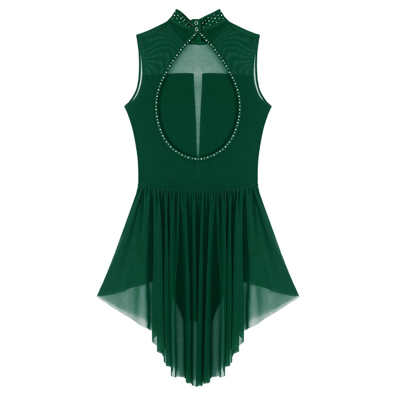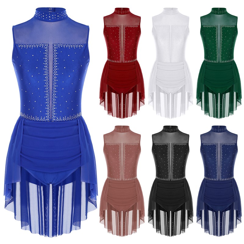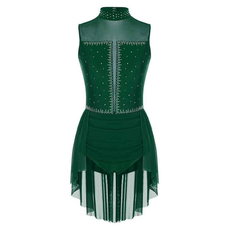 Women’s sleeveless dance dress is decorated with sparkly rhinestones to make you stand out from the show.