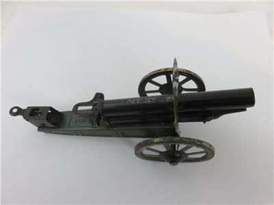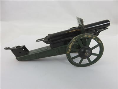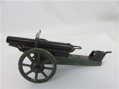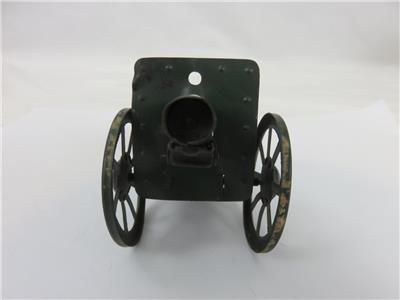 We are offering an antique spring-loaded field cannon. Made in Germany. Measures 6 1/2" long and 2 3/4" high.