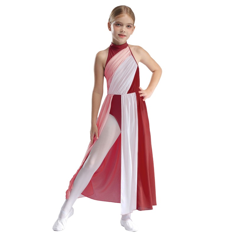 Kids Girls Dancewear Ballet Dress Color Block Leotard Modern Costume Split