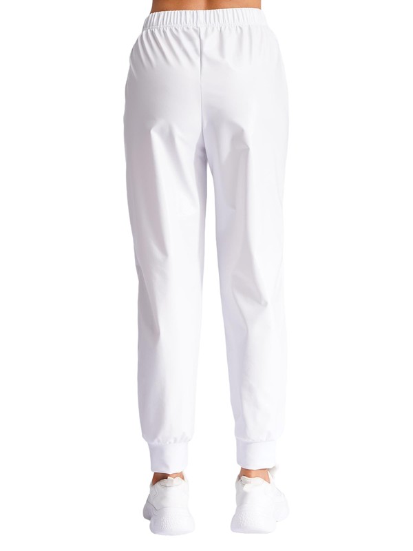 High waist, long pants, elastic design at waist and ankle are stretchy to fit. Slant pockets at both sides.