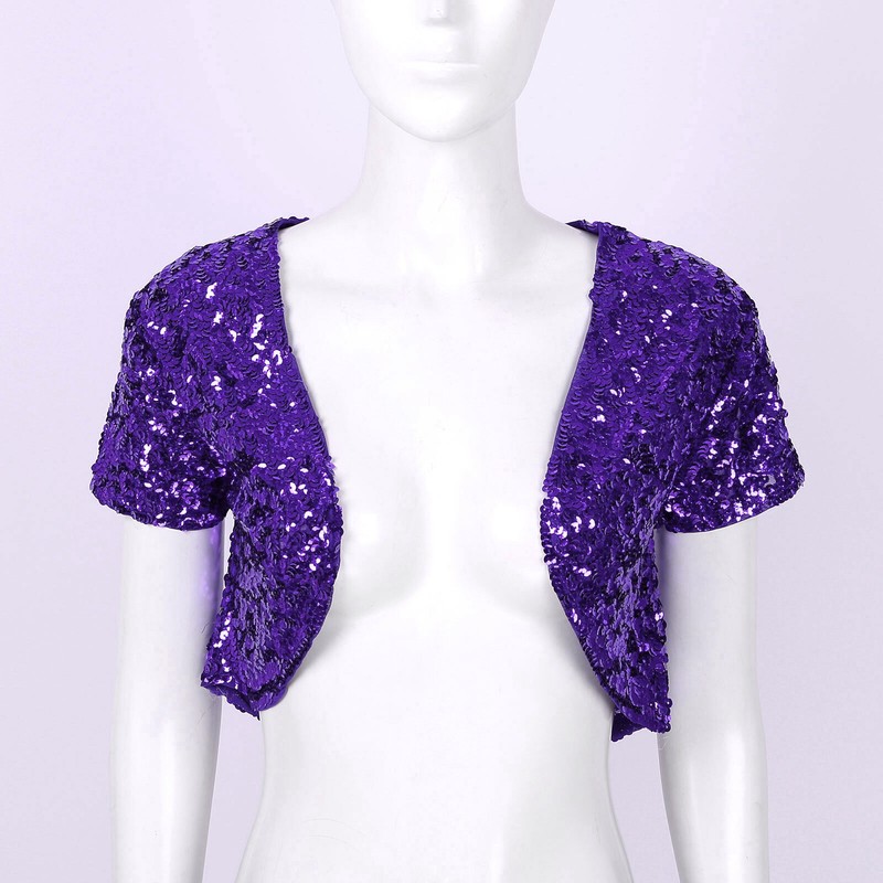 Women Shiny Sequin Cropped Jacket Coat Glitter Cardigan Outwear Stage Performance Costume.
