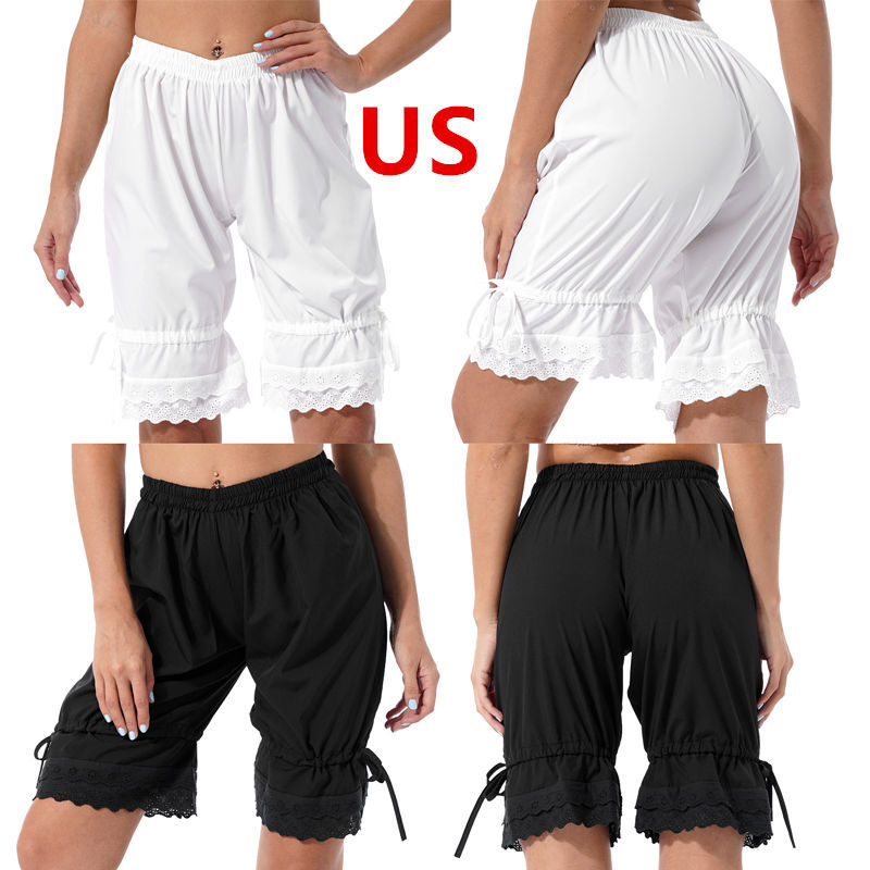 Womens Solid Color Bloomers Shorts Frilly Short Pants Elastic Waistband Panties.