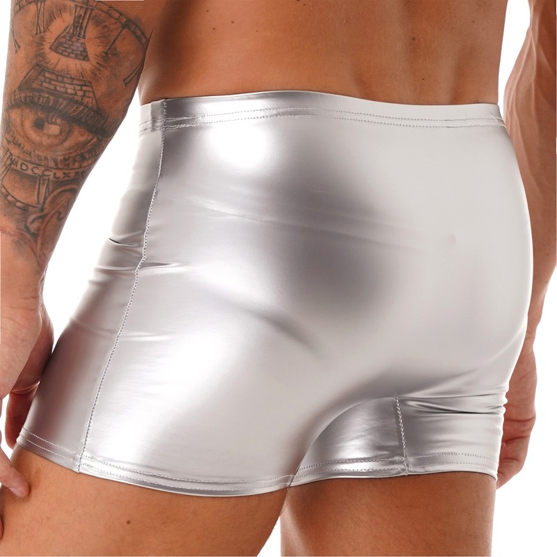Mens Wet Look Patent Leather Shorts Bulge Pouch Boxer Brief Clubwear.