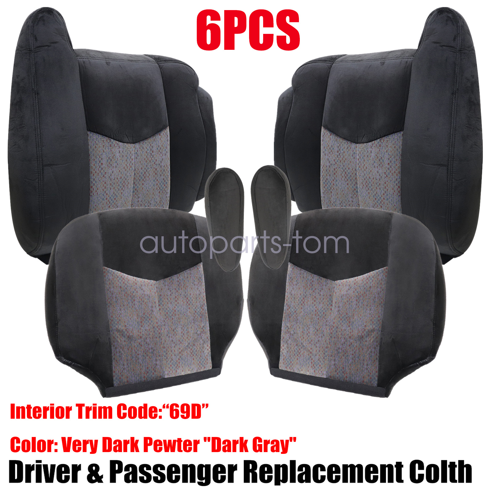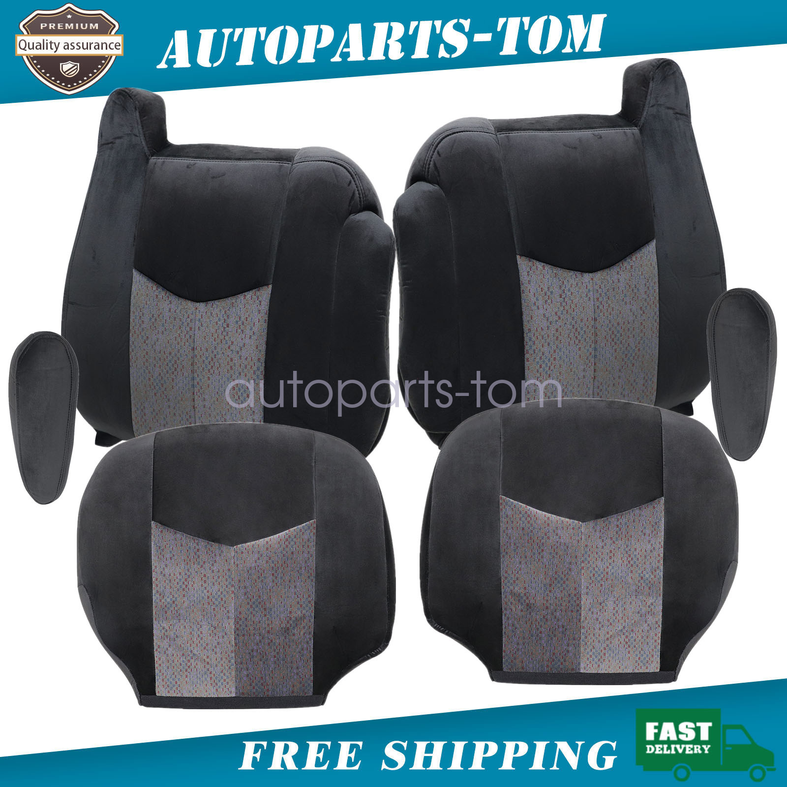 Fits 2003-2007 Chevy Silverado 1500 2500 3500 Driver & Passenger Bottom & Top Cloth Replacement Seat Cover & Front Armrest Cover Dark Gray