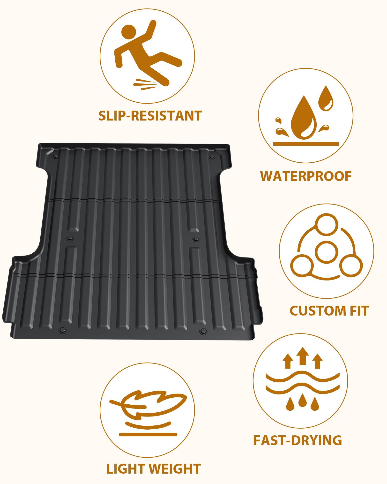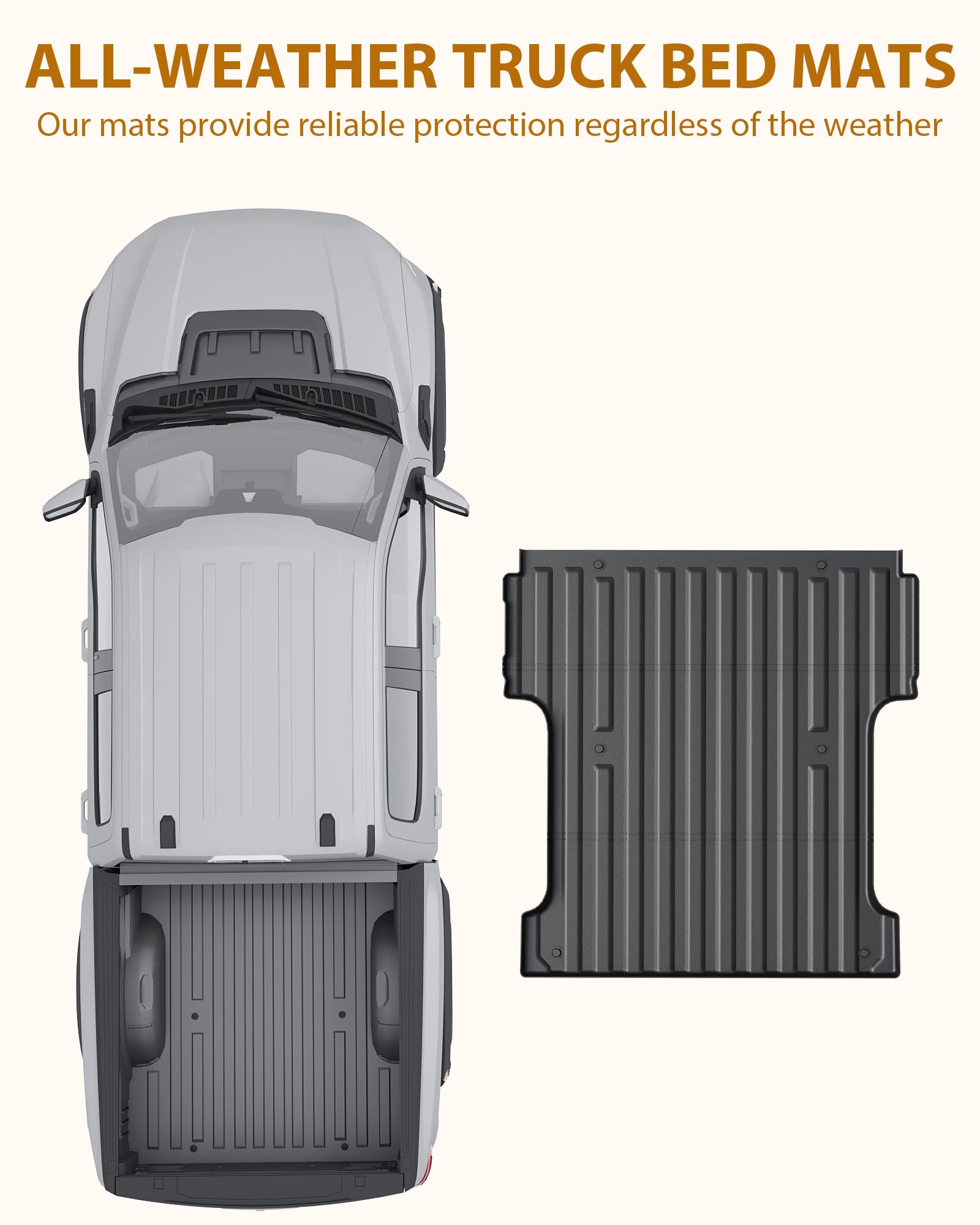 ALL-WEATHER PERFORMANCE: Whether it's rain, snow, or sunshine, our truck bed mats liner is up for thechallenge. All-weather capability, providing year-round protection.
