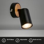 LED Spotlight, 1 flame I metal / black, wood I excl. 1 x LED/GU10 max. 9W I not dimmable I spotlight rotatable and pivotable I IP20 I 95x95x180mm (LxDxH)
