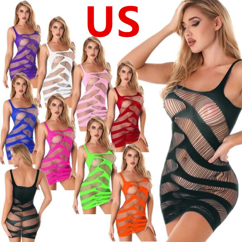 Women’s one-piece erotic hollow out fishnet bodystockings lingerie mini dress, one size fits most.