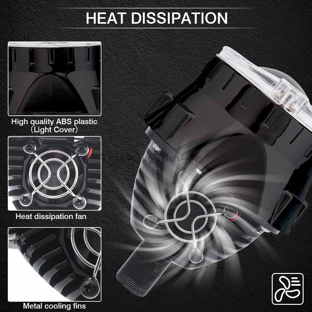 The Lens led Light are composed of high-quality aluminum alloy casing,Metal Cooling Fins and Cooling fans,Ensure heat dissipation effectively.
