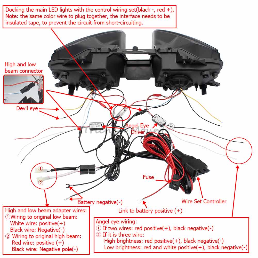 Cable Description: red positive +, black negative -, white positive + (connect the positive with the red cable, the light brightness will be weakened a little bit, if you don't need it, you can ignore this white wire)
