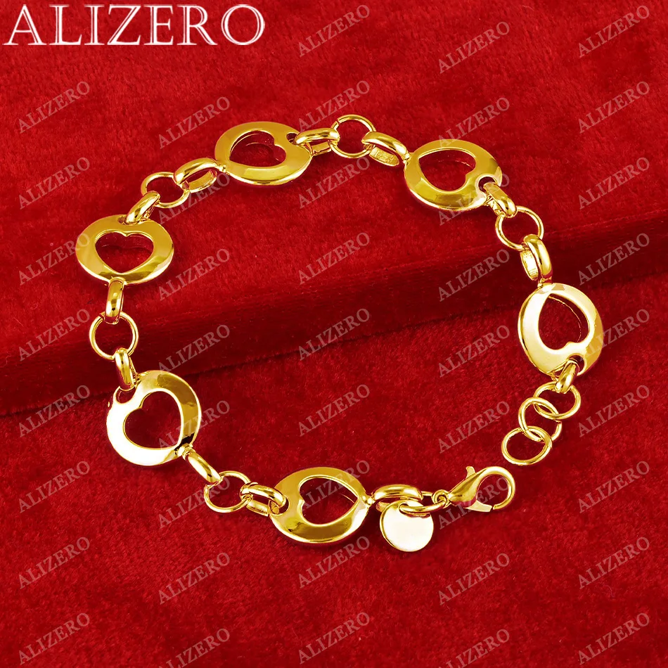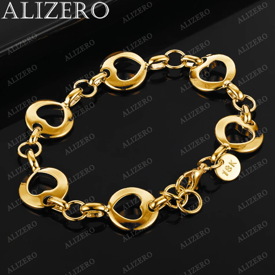 ALIZERO 18K Gold Bracelet Round Hearts Bracelets For Women Fashion Wedding Party Jewelry Valentine's Day Gift