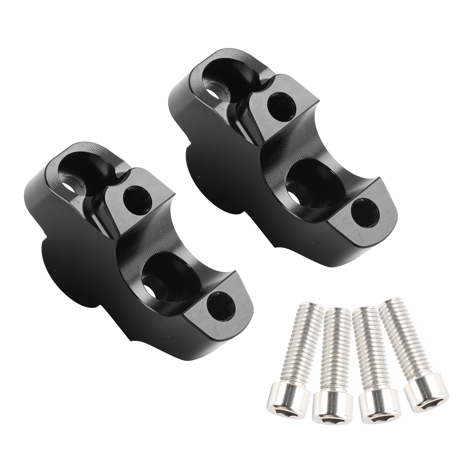 Features: Made of Heat Treated Billet 6063-T6 Aluminum. Manufactured using 100% CNC Machining. No Casting or Molding are involved in the Manufacturing Process. Finished with anodize in black. Raises the handlebars by 30mm. 21mm offset. Appropriate length screws are included with the kit. This listing comes with: (2) Bar Risers (4) M8x31mm allen screws. Improves ergonomics for a more comfortable ride & easier reach. Relieves neck, back & shoulder fatigue on long rides. The assembly is very simple to fit using basic DIY skills and common tools. No need to extend the clutch cable or brake line. Instruction NOT included. Ready to install.