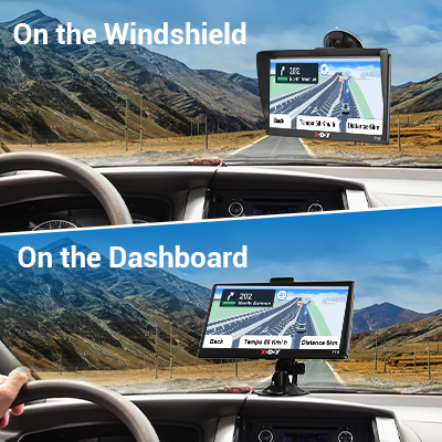 | 12 GPS satellites for location searches are simple and reliable, no need to connect to the network. No matter where you go as long as you bring it, don't worry that you could be lost without WLAN. | Elegantly integrated into the dashboard or mounted on the windshield for portable convenience. Both provide precise navigation, making your journey easier and more accurate. Choose your style and navigate with confidence. | Stay road-smart with our satellite navigation's height, weight, and width limit reminder. Drive confidently, knowing you're guided away from restricted routes. Your journey, your safety â prioritized. |