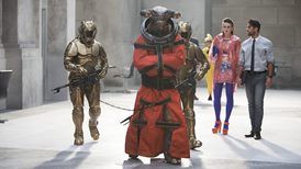 Silurian Madame Vastra, her human maid and wife Jenny, and Sontaran butler Strax. Vastra instructs the police on how