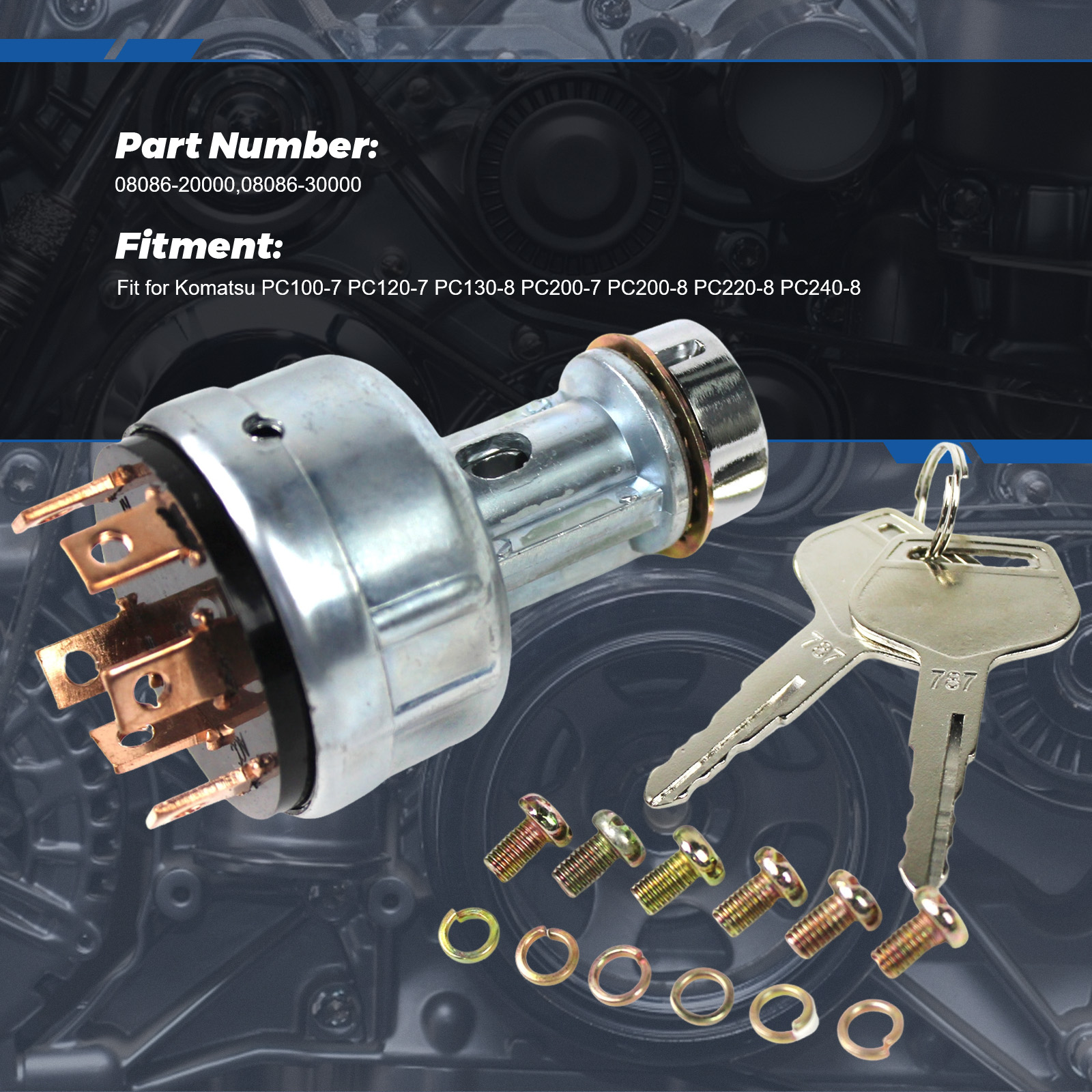 Key Ignition Switch 08086-10000 for Komatsu Excavator PC200-1 PC200-2 PC200-3