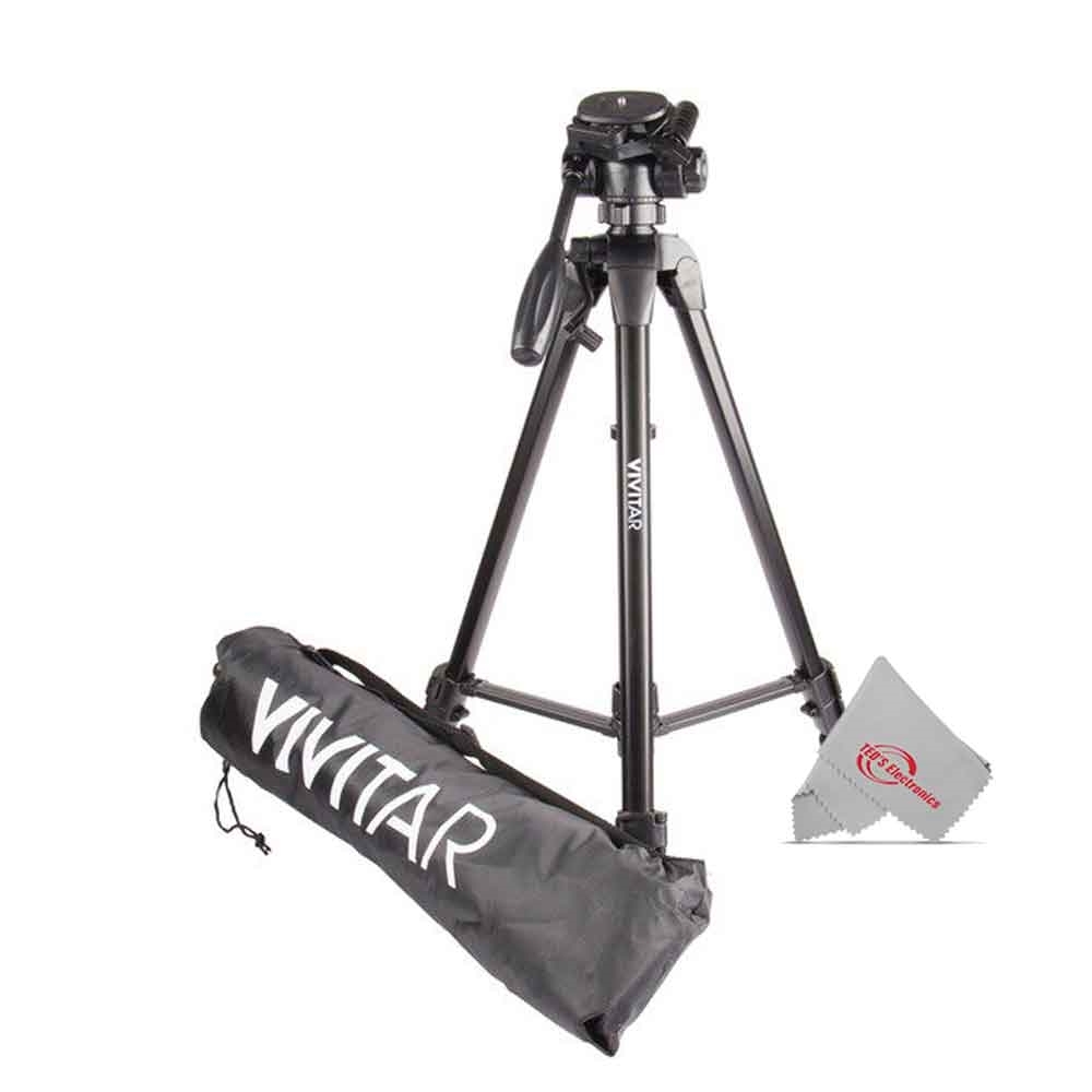 This Vivitar 62 Inch Tripod offers 3-way fluid pan head with bubble level and quick-release mount. This high quality, unique tripod also offers a elevated center column and a center column brace. The particular product further has a 3-section channel leg locks and a extended height: 62". It also comes with a tripod case. This 62" tripod has a weight capacity of up to 8lbs. It is a great option for photographers needing a tripod more sturdy yet portable. This tripod folds to 24 inches and weighs just 2lbs.