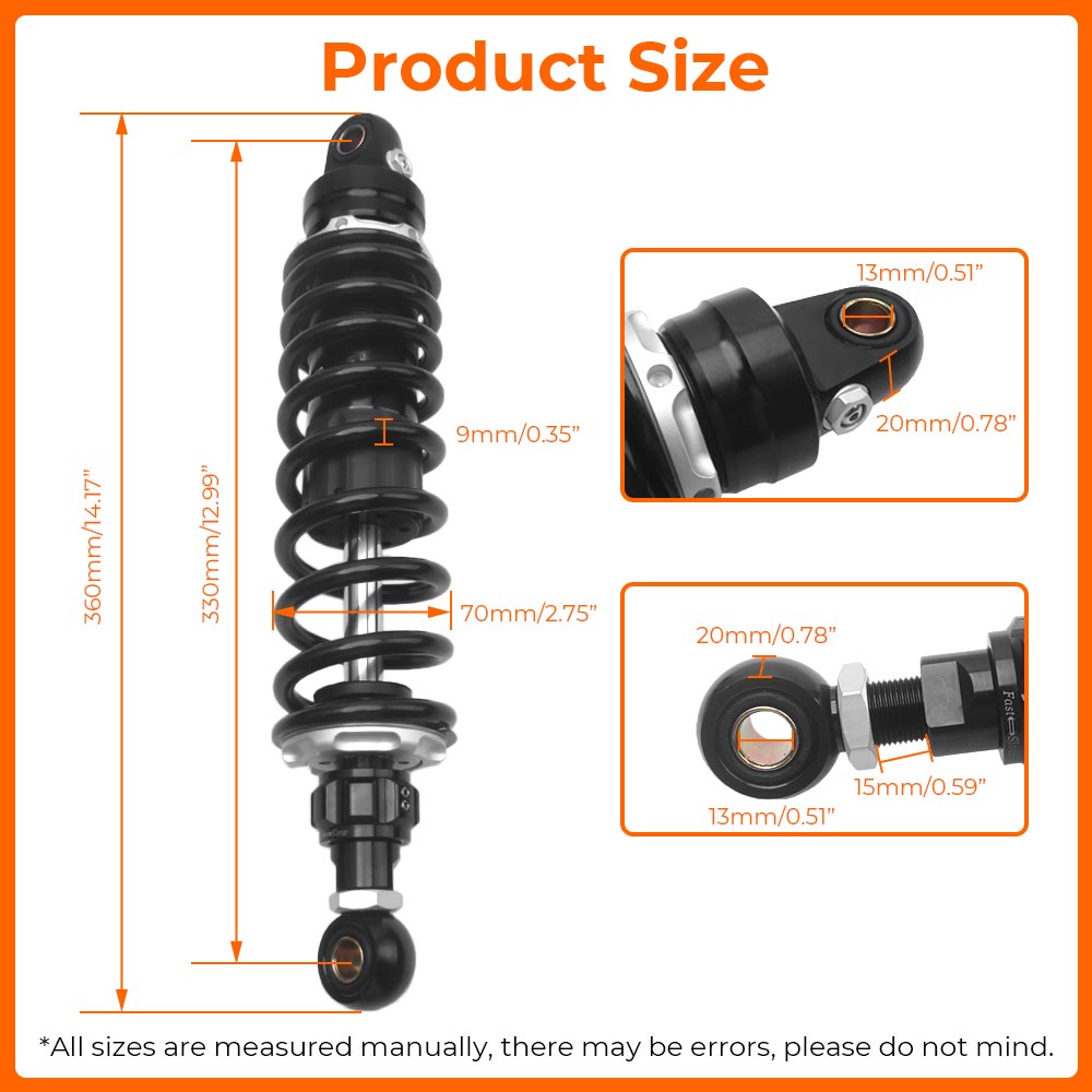 Absorb shock promptly in the clumpiest road to improve security and make you feel more comfortable. Best choice for replacement, style upgrading or bike modification.