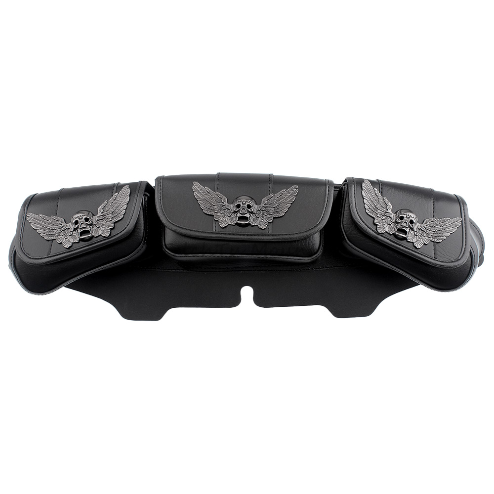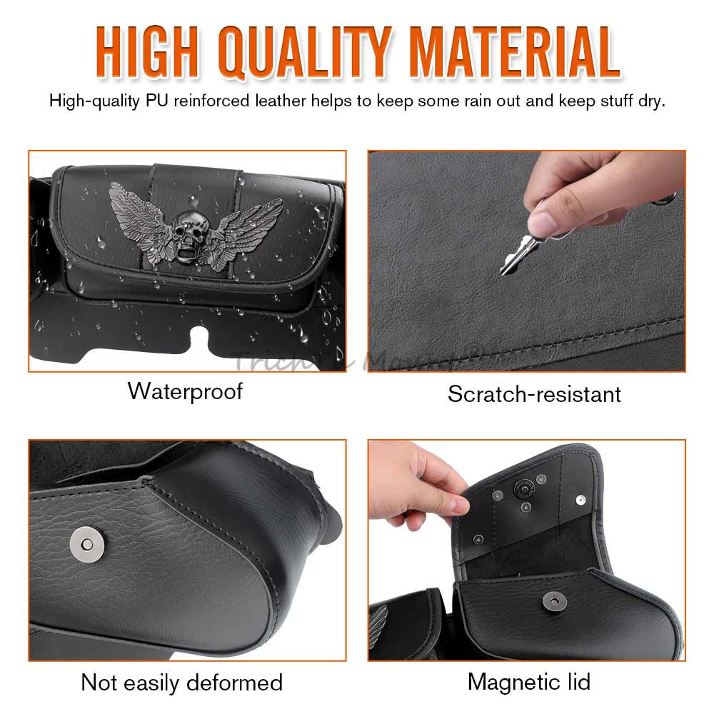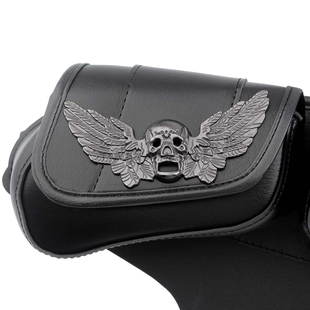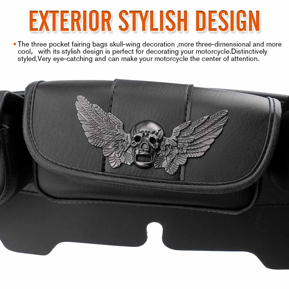 The three pocket fairing bags skull-wing decoration ,more three-dimensional and more cool,with its stylish design is perfect for decorating your motorcycle.Distinctively styled,Very eye-catching and can make your motorcycle the center of attention.