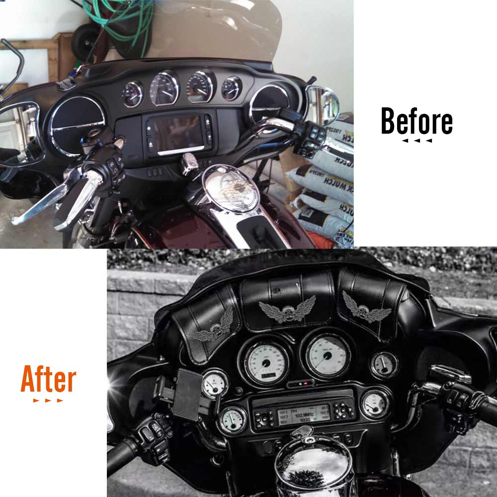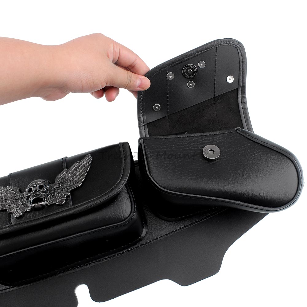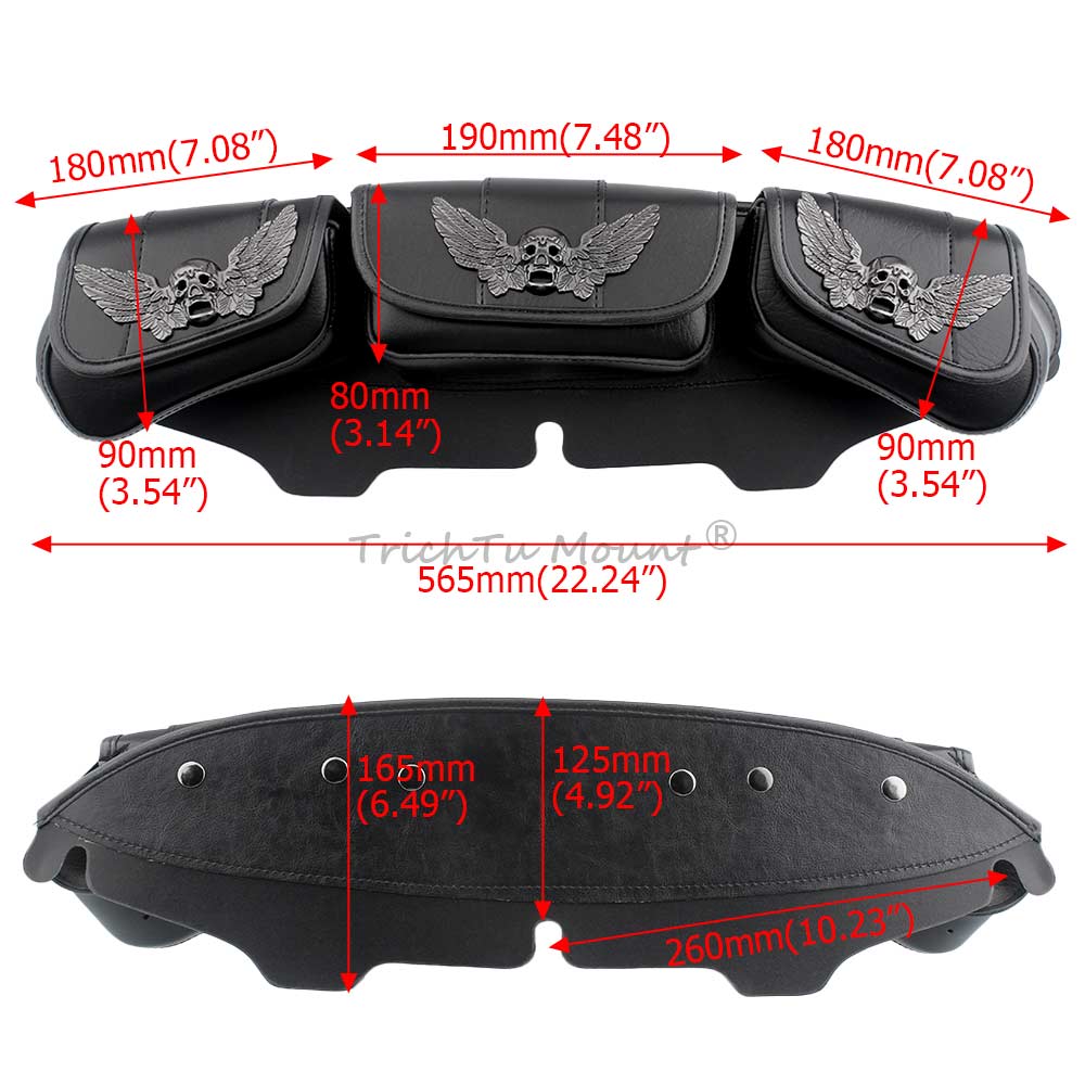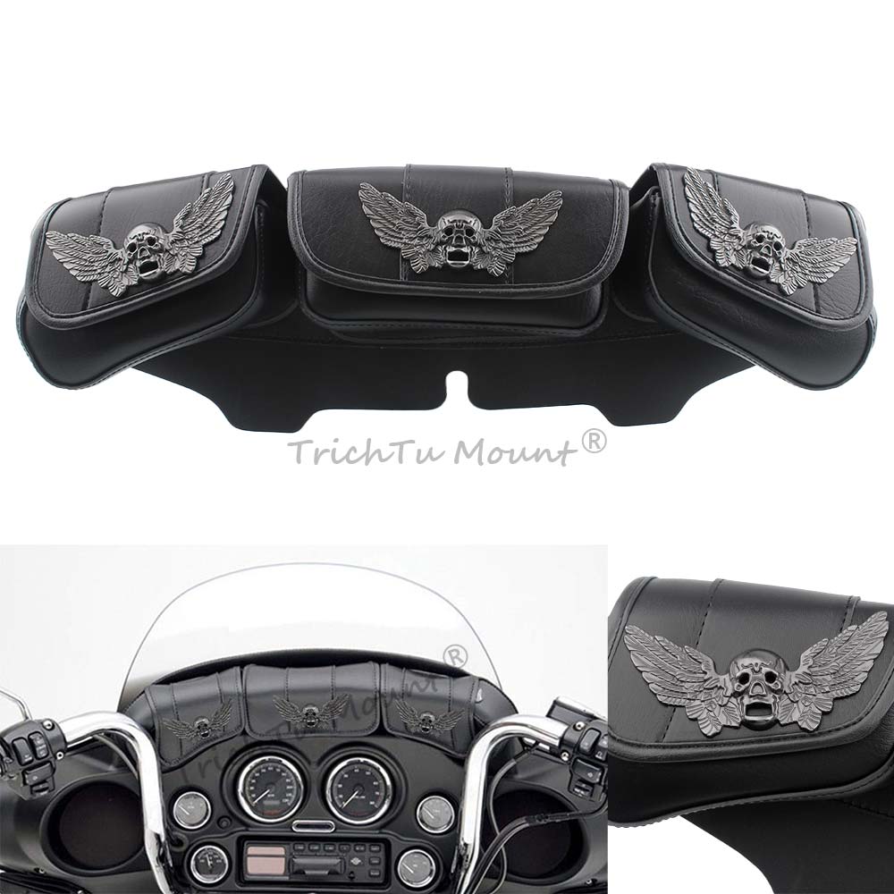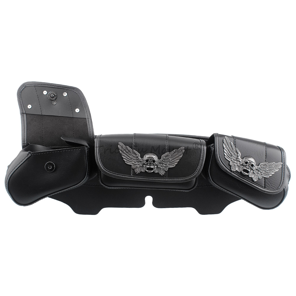 The three pocket fairing bags skull-wing decoration ,more three-dimensional and more cool,with its stylish design is perfect for decorating your motorcycle.Distinctively styled,Very eye-catching and can make your motorcycle the center of attention.
