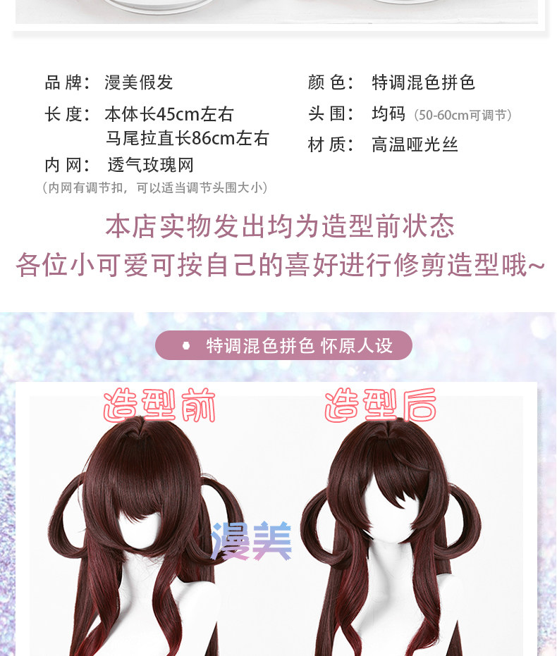 Size: The length of the wig is 45cm, and the length of the ponytail