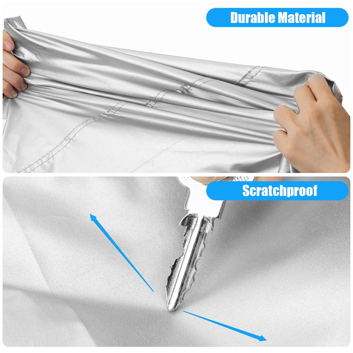 -Made of High-density Polyester Fabric ans silver coating can enhance waterproof function and protect surface of vehicle from being scratched, sliver coating of the car will not cause any damage to paint.