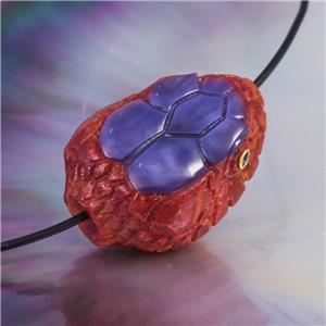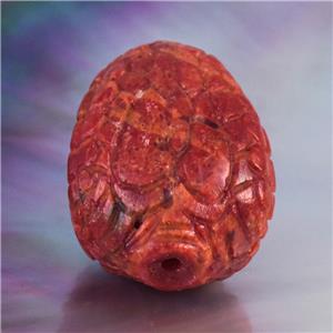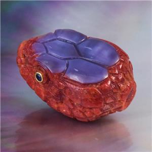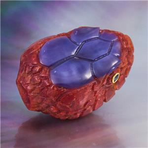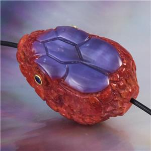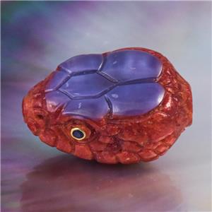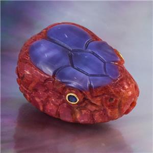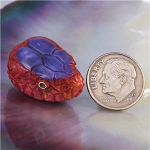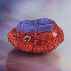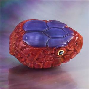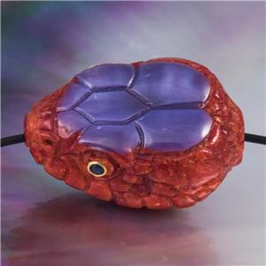 SPECTACULAR SNAKE HEAD FOCAL BEAD ~ HAND-CARVED NATURAL RED SPONGE CORAL & PURPLE SHELL