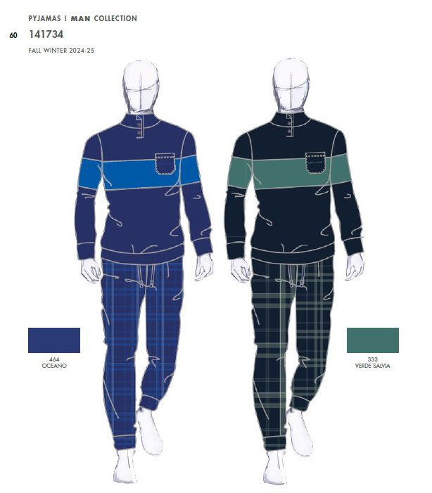 Pigiama homewear a serafino con bottoni in morbido e caldo PILE con taschino e pantalone scozzese con polsini.