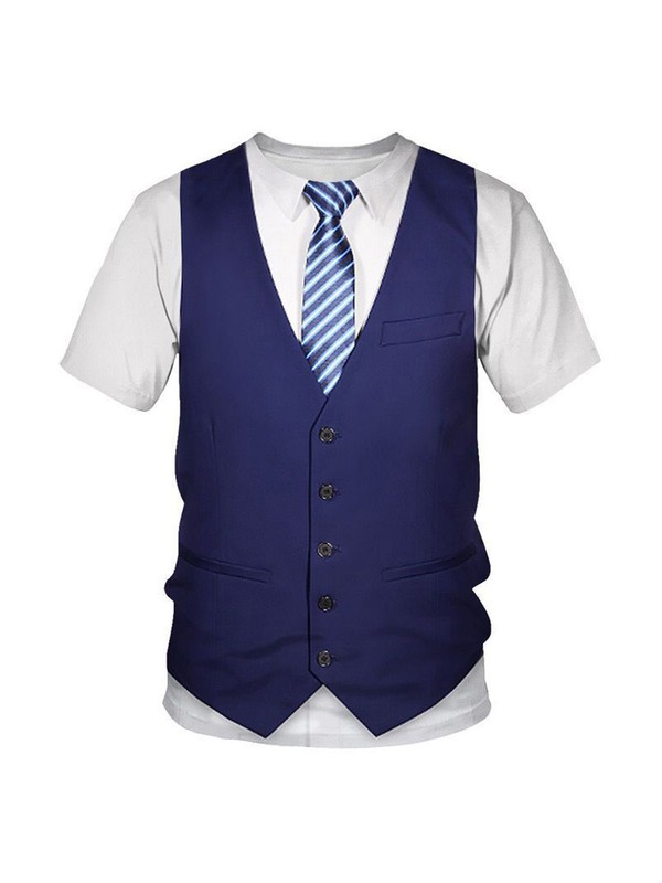 Das T-Shirt mit Rundhalsausschnitt, kurzen Ärmeln, 3D-Druckmuster mit Smokingfliege und Weste sowie Pulloververschluss ist die perfekte Wahl für den Sommer.