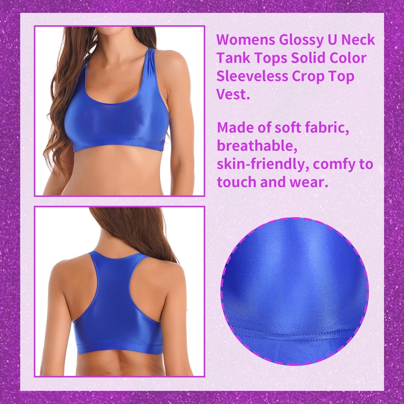 Glänzende U-Ausschnitt-Tanktops für Damen, einfarbig, ärmellos, Crop-Top-Weste.