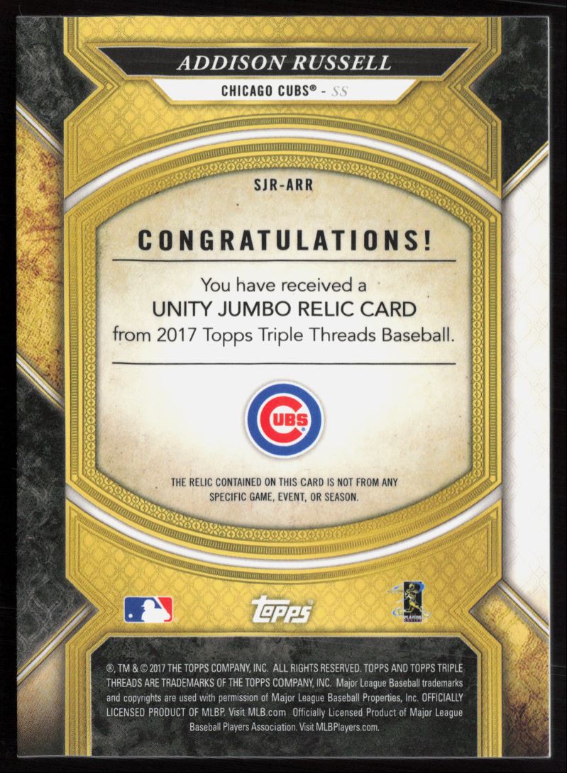 2017 Topps Triple Threads Single Jumbo Unity Relics Gold Addison Russell /36