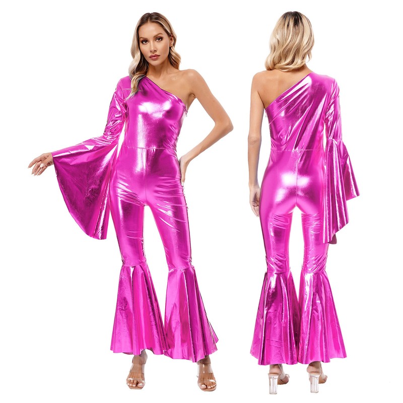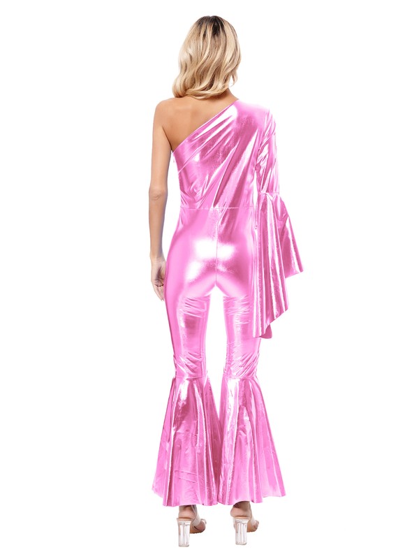 Overall mit ausgestellten Ärmeln für Damen, eins Schulterumfang und Schlaghosen-Design lässt Sie in der Menge auffällig und einzigartig aussehen.