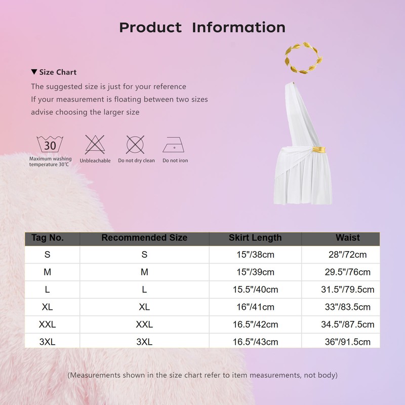 Der Toga-Rock ist aus hautfreundlichem Polyester gefertigt, angenehm und atmungsaktiv zu tragen. Die Kopfbedeckung hat Metalldraht, um die Form zu halten.