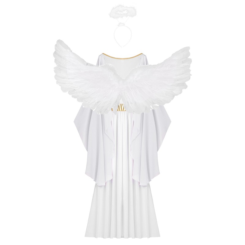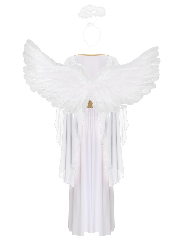 Passend dazu eine Kopfbedeckung und Engelsflügel aus Federn (Größe ausgefaltet: 80 x 40cm/ 31.5 x 16 Zoll), mit zwei elastischen Riemen, leicht zu tragen.