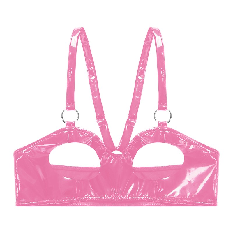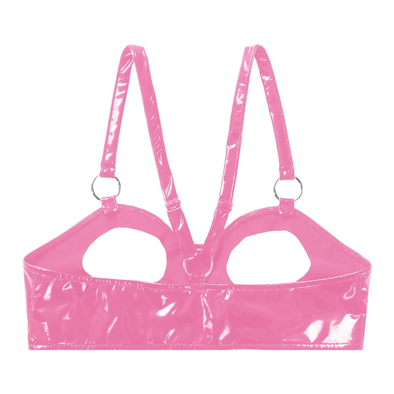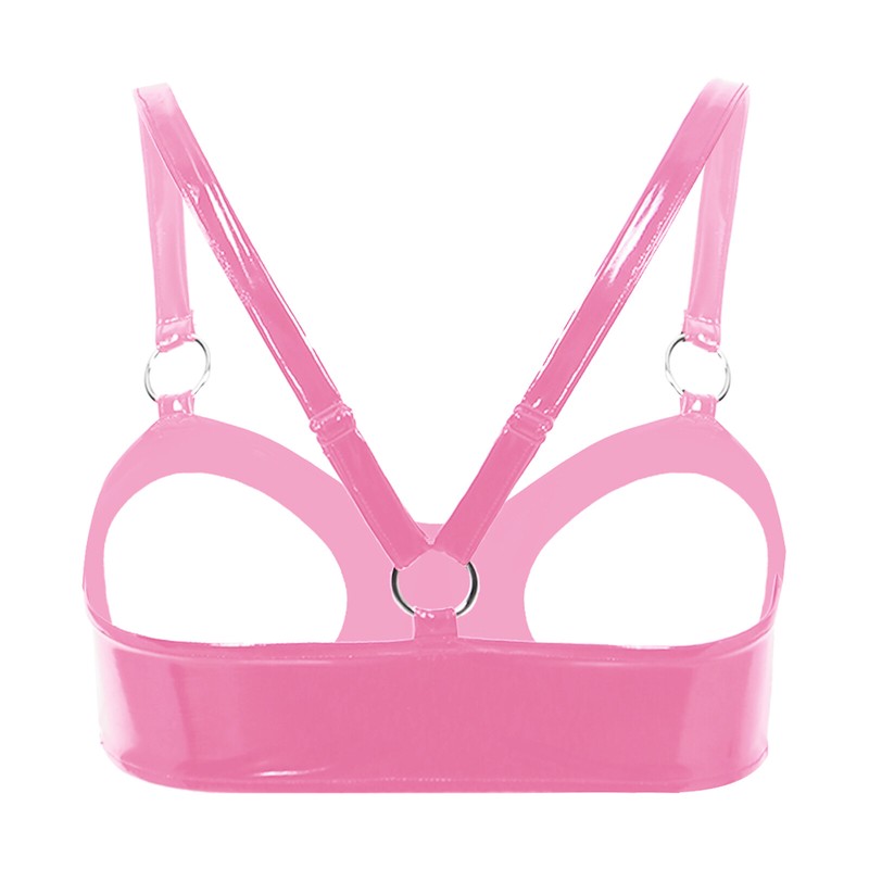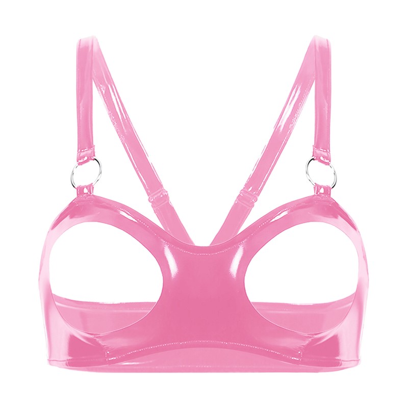 Damen Wet Look Lackleder Open Cup BH Tops O Ring Dessous Unterwäsche.