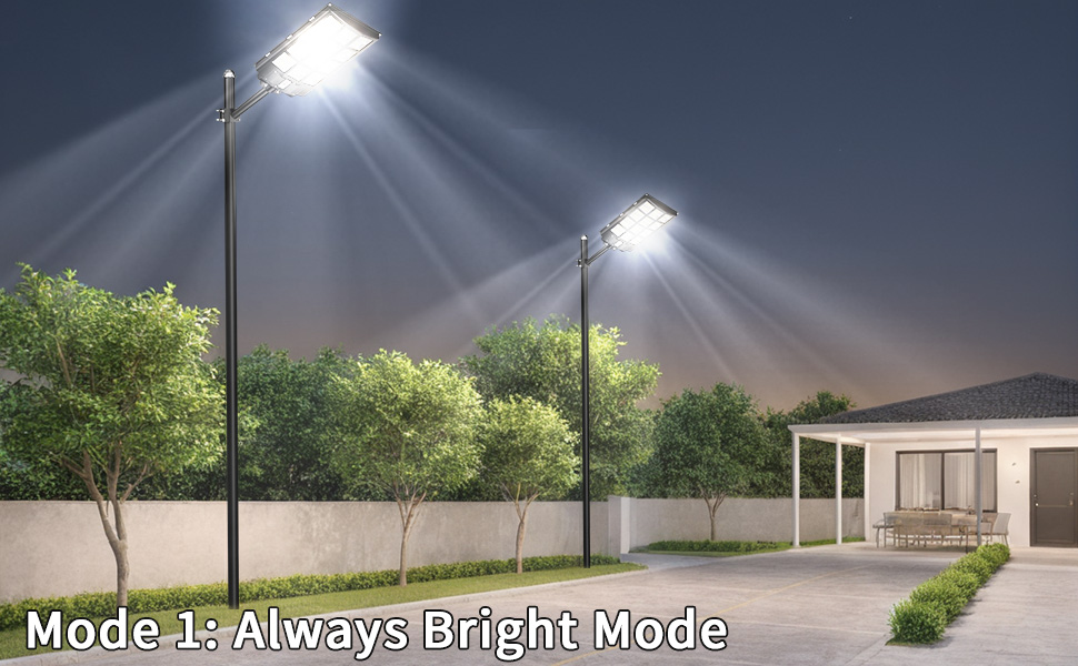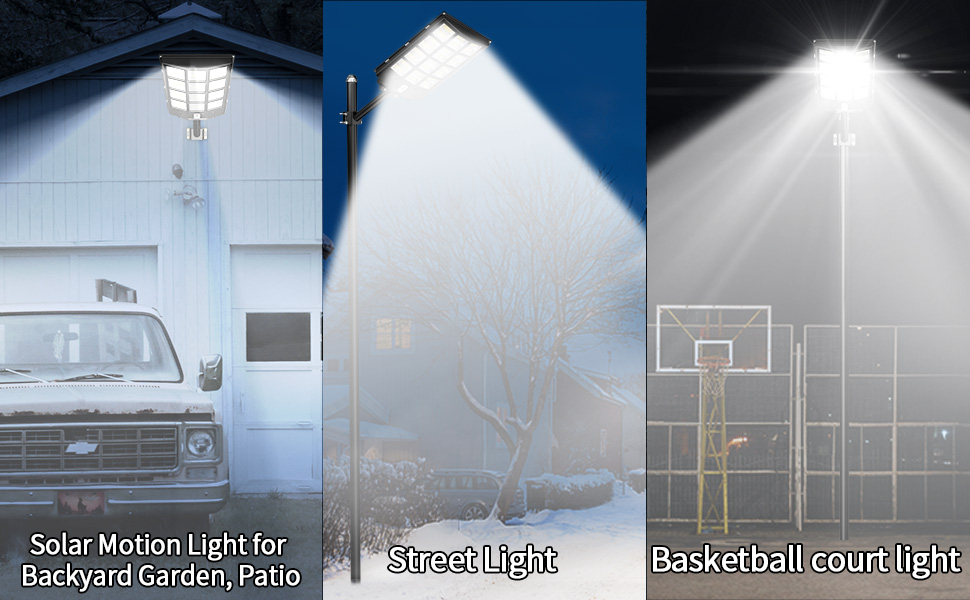 【Ultra-Wide-Angle Lighting】 — The upgraded solar parking lot light adopts a three-way panel ultra-wide-angle lighting design, which can provide wider lighting and brighter light than ordinary street lights. The lighting area is up to 7000~8000 square feet, illuminating the blind spots. Escort the safety of you and your family. The first choice for night lighting. Continuous lighting up to 40 hours (when fully charged).