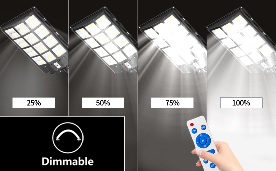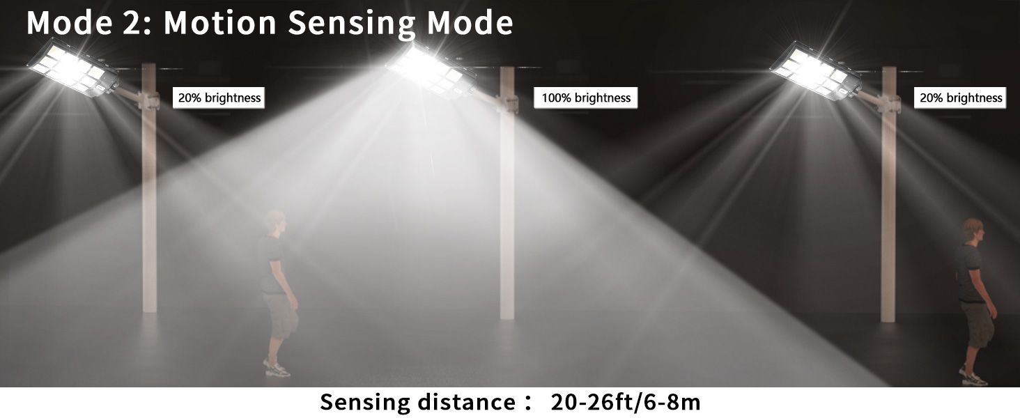 【3 Lighting Modes & Smart Control】 — The solar flood light provides 3 lighting modes for you to set. Mode 1: Always bright, Mode 2: Motion sensing, Mode 3: Timer setting. 3 timer settings are provided: 3H/5H/8H. You can also adjust the brightness via the remote control. Brightness level 10%-100% adjustable. Best choice for commercial lighting and home lighting.