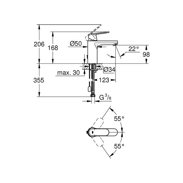 GROHE EH-Waschtischbatterie Eurosmart C 23326 mittelhoch versenkb. Kette chrom