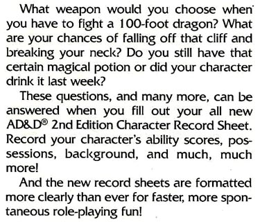 For sale is a booklet of Advanced Dungeons & Dragons Character Record Sheets. It was produced by TSR in 1989 and features a set of bound sheets ready to take on your legendary characters!