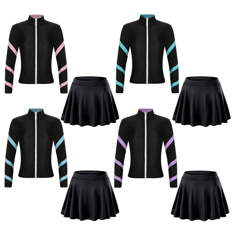 Kids Girls Outfits 6-14 Years Gymnastics Stripe Print Ballet Color Block ShinyUSD 10.99
