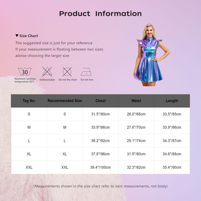 Adopts with shiny fabric and bold colors, this holographic shiny surface brings dazzling and unique luster to make you stunning.